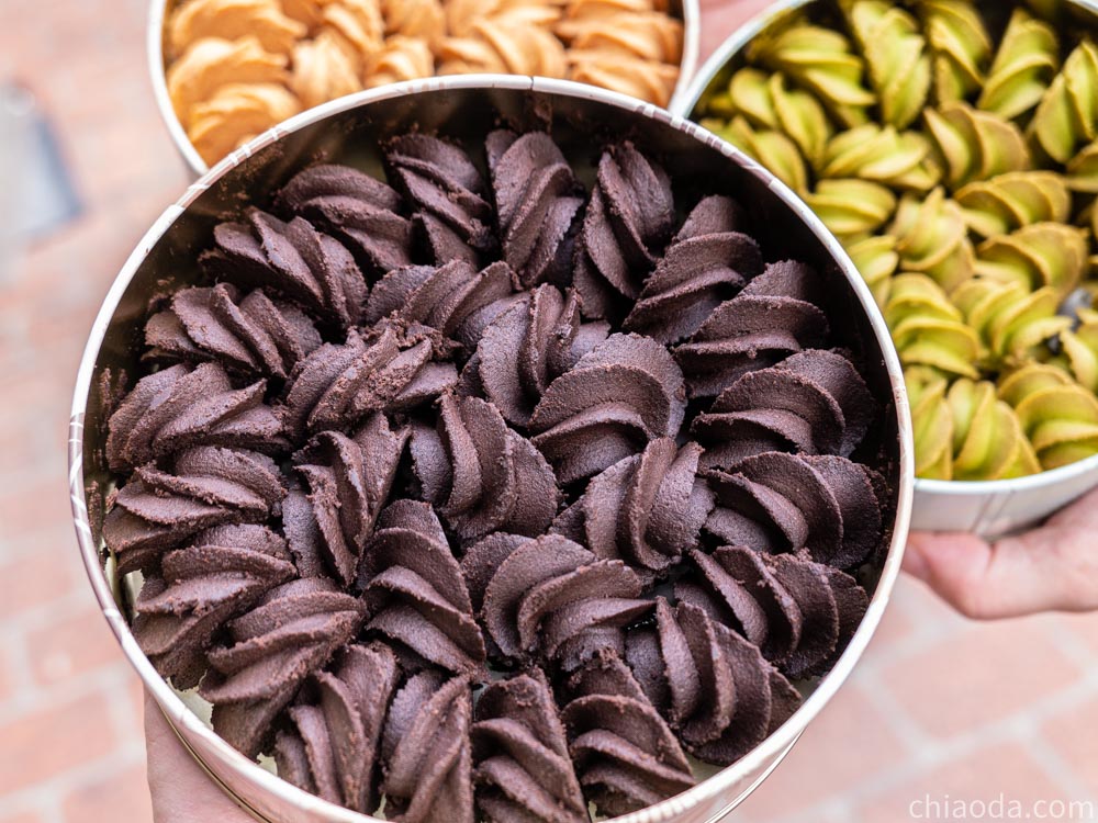 可可口味的曲奇看起來好黝黑好像緞帶一樣,很有光澤感,感覺可可味很濃郁。使用法國頂級法芙娜72%可可與棕櫚蜜製成,咬一口發現可可真的很香濃,中心還好像有巧克力融心的感覺,甜中帶可可本身的微苦,不愛吃甜的朋友一定會愛這款!